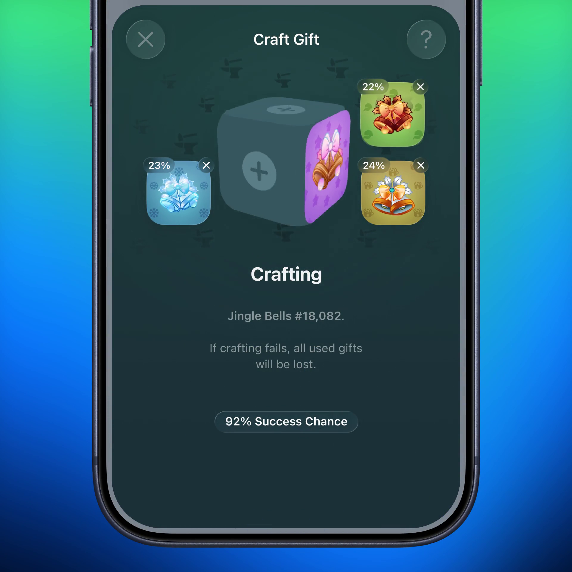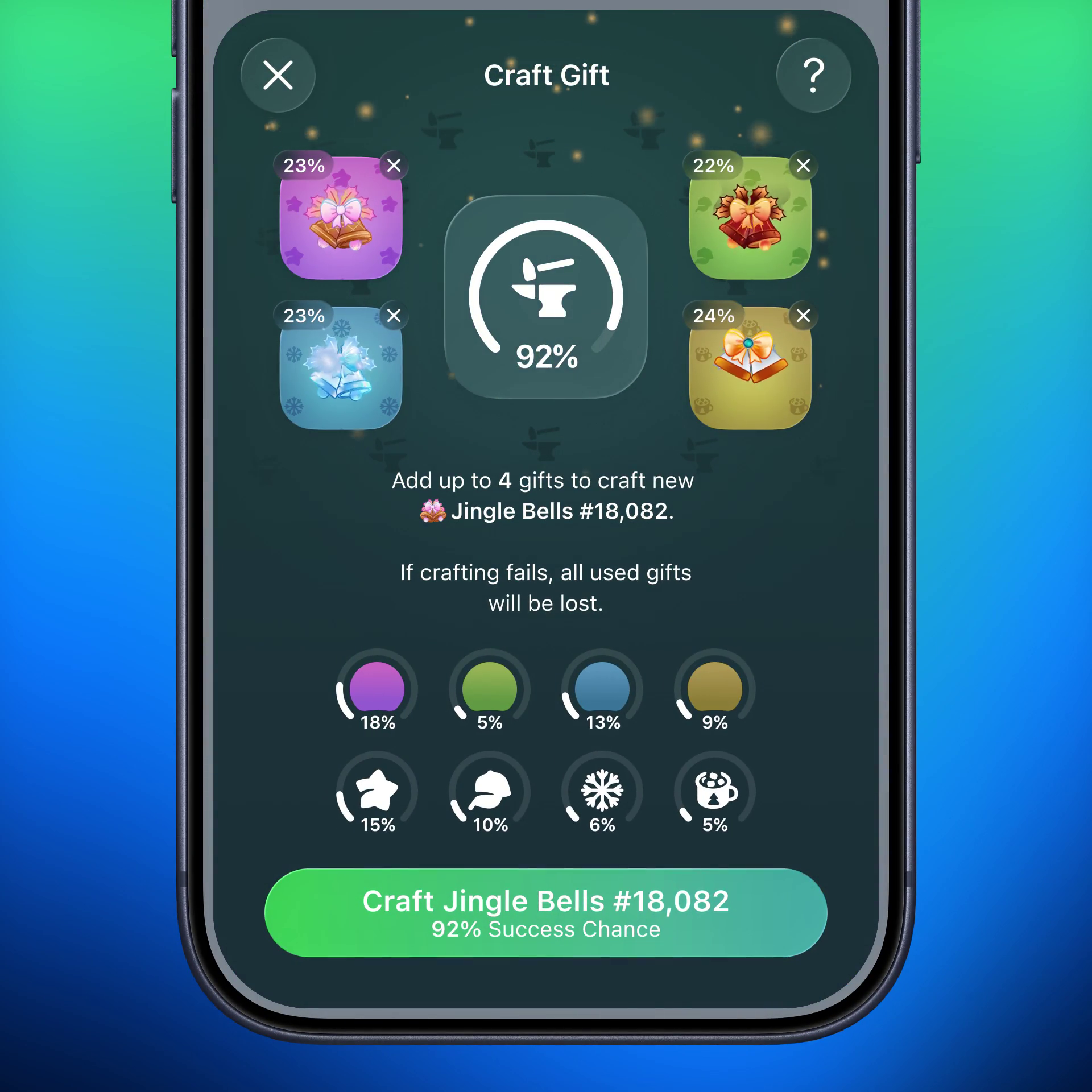 Успех крафта никогда не равен 100% — всегда есть риск потерять все вложенные подарки.