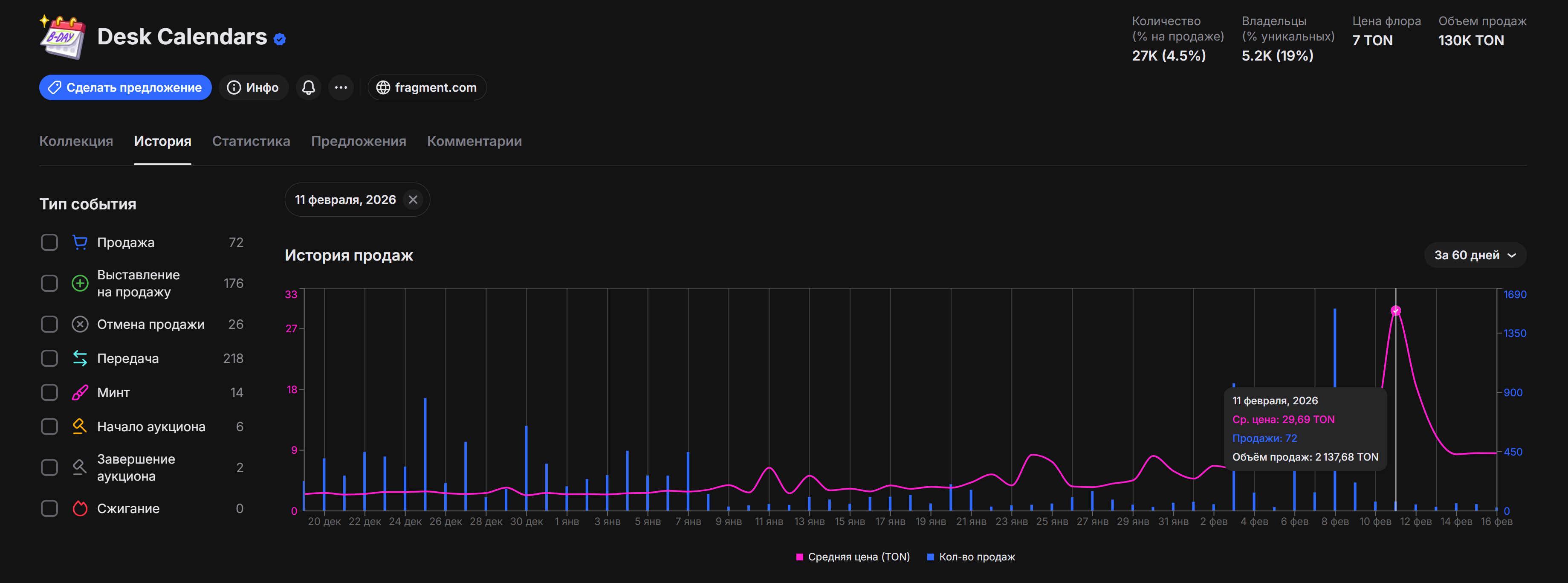 - Календари и колокольчики на чёрном фоне выросли с 30 до 170 TON (~$240)