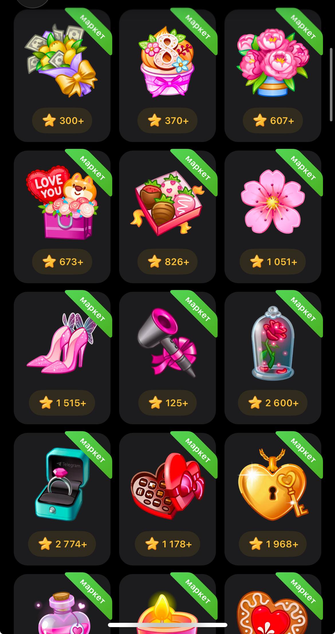 - NFT-подарки на маркетплейсе — от 900₽